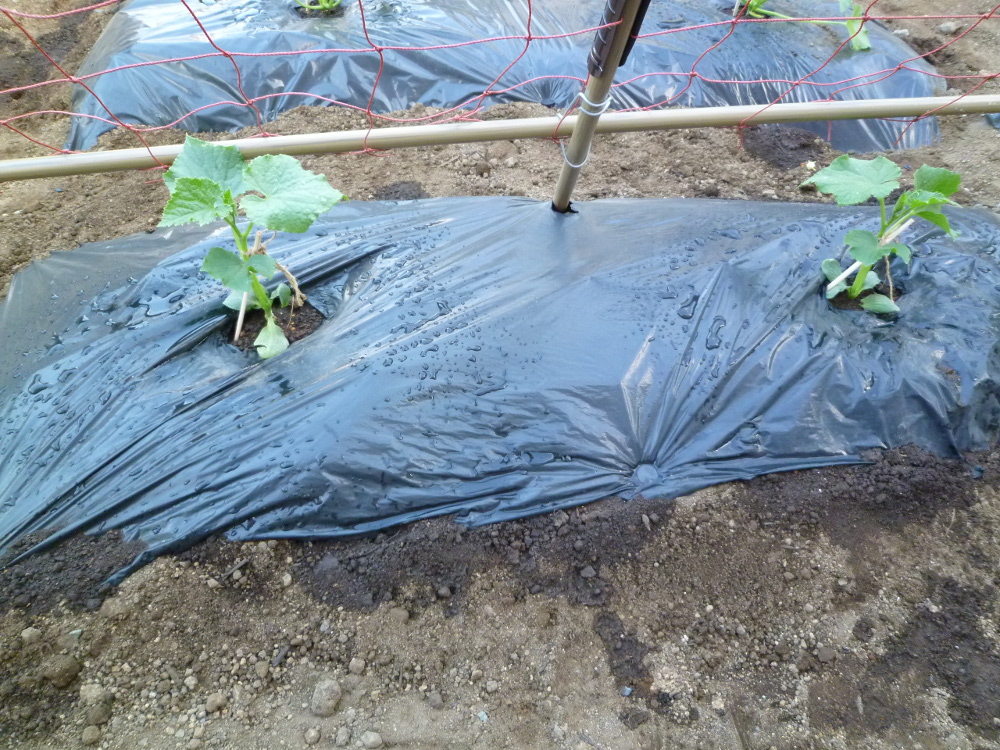 組み立てた後、設置場所(きゅうりの畝)に運ぶのがまたひと苦労(何せ大きい!)でしたが、2人がかりで設置完了!