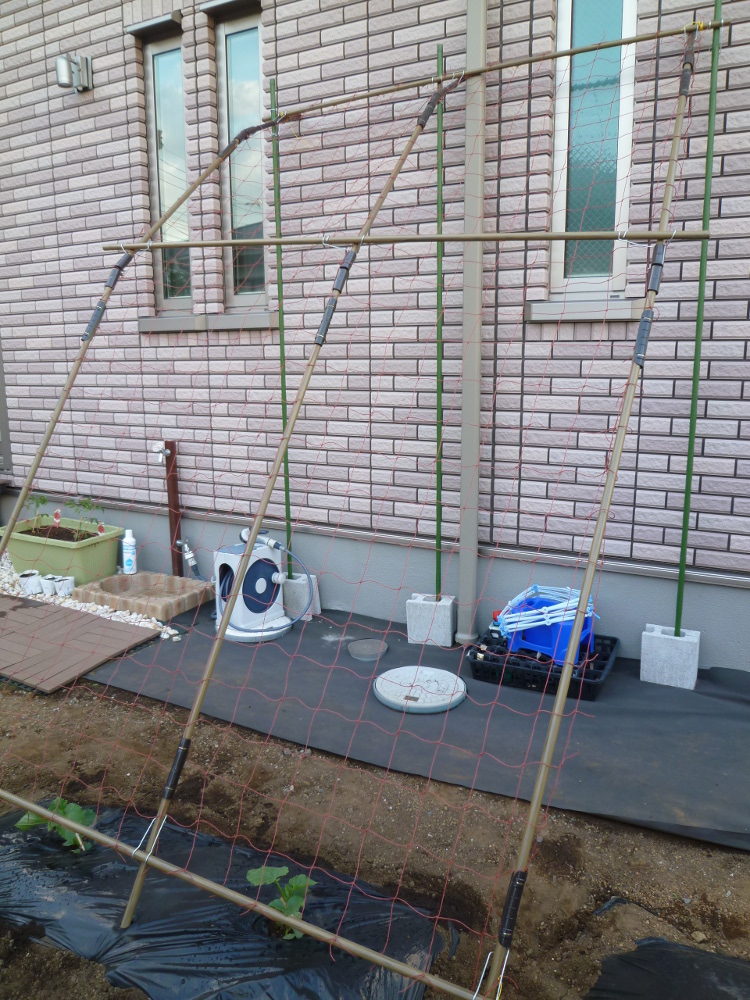 合わせて、きゅうりのネットも設置しました!
