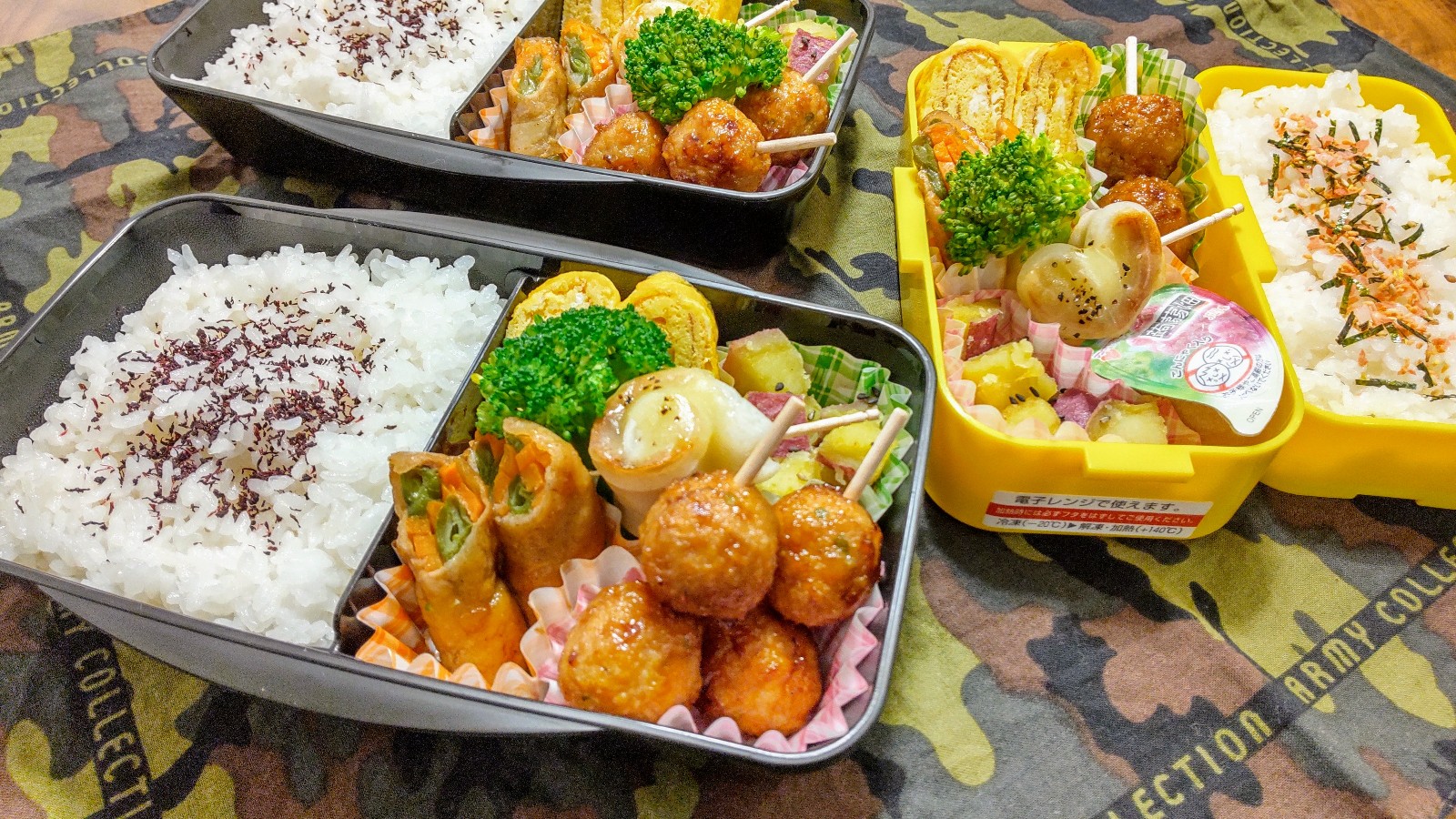 今日は夫が出社の日だったので、夫、長男、長女と3人分のお弁当です。