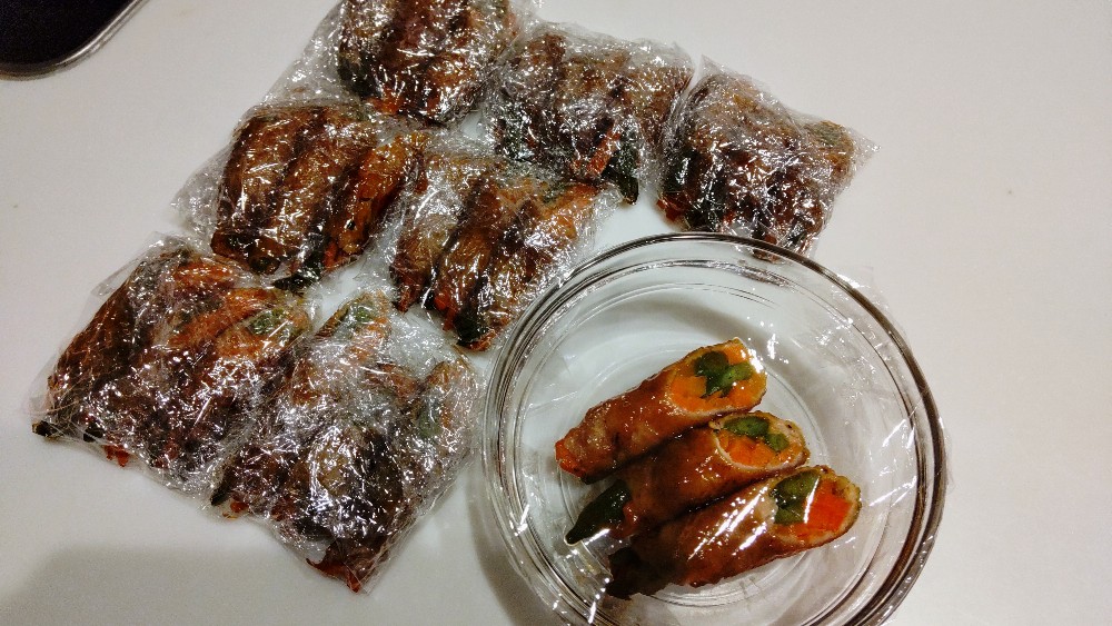 - にんじんといんげんの肉巻き(冷凍つくりおき)