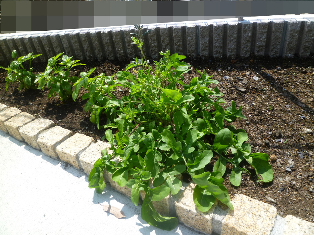 GW前に花壇に植えたルッコラの苗。