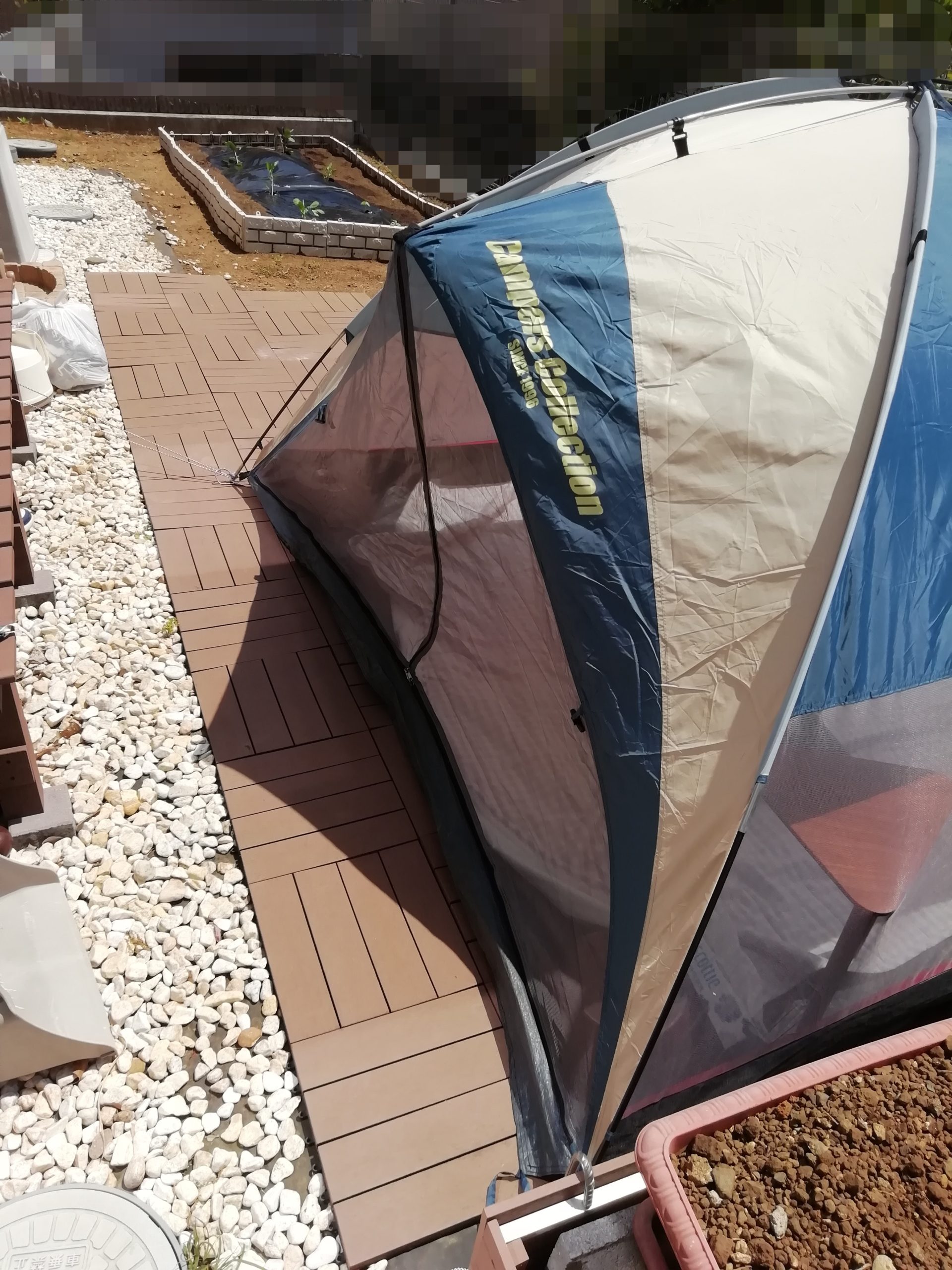 休み初日は、物置にしまいっぱなしにしていたテントを引っぱり出し、夫がテントを張ってくれました。